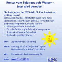 Runter vom Sofa raus aufs Wasser- Jetzt wird gerudert! Die Ruderjugend des FRVS stellt Dir ihre Sportart vor: probiere es aus!